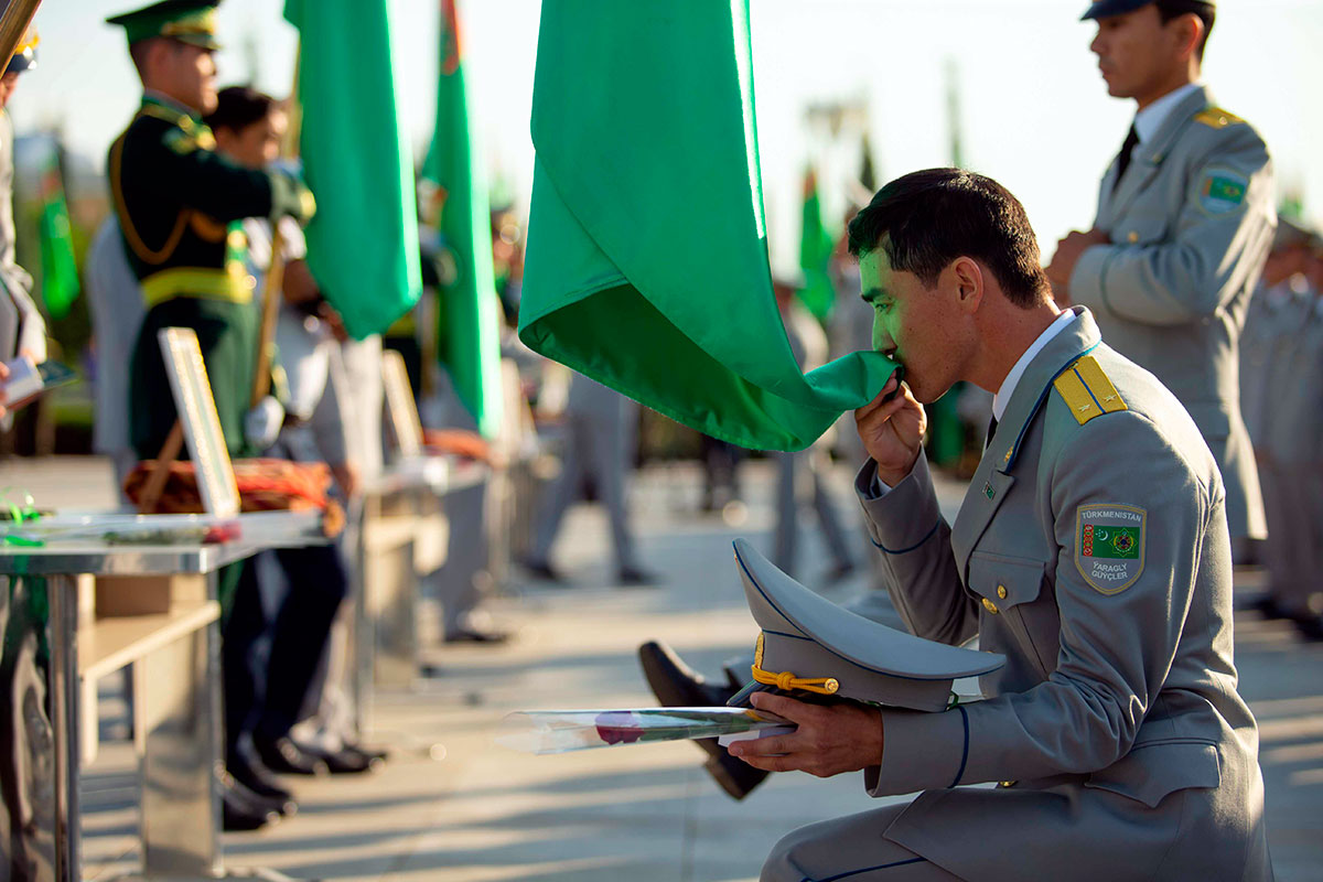 Ir säher bilen «Halk hakydasy» ýadygärlikler toplumynda ýurdumyzyň Harby akademiýasynyň hem-de harby we hukuk goraýjy edaralarynyň ýokary okuw mekdepleriniň uçurymlaryny hormatlamak dabarasy boldy. Bu waka mynasybetli guralan dabara Goranmak ministrliginiň Berdimuhamet Annaýew adyndaky 1-nji ýöriteleşdirilen harby mekdepde başlandy. Bu ýerde watançy esger, ilhalar ynsan we durmuş ýoly nusgalyk mekdebe öwrülen B.Annaýewiň ýadygärligine gül desseleri goýuldy. Soňra Harby akademiýanyň, Goranmak ministrliginiň Beýik Saparmyrat Türkmenbaşy adyndaky Harby institutynyň, Milli howpsuzlyk institutynyň, Içeri işler ministrliginiň institutynyň uçurymlary “Halk hakydasy” ýadygärlikler toplumynyň etegine gül desselerini goýdular. Ýygnananlar Türkmenistanyň Prezidenti, ýurdumyzyň Ýaragly Güýçleriniň Belent Serkerdebaşysy goşun generaly Gurbanguly Berdimuhamedowyň Türkmenistanyň Harby akademiýasynyň, Goranmak ministrliginiň Beýik Saparmyrat Türkmenbaşy adyndaky Harby institutynyň, Goranmak ministrliginiň Harby-deňiz institutynyň, Milli howpsuzlyk institutynyň we Içeri işler ministrliginiň institutynyň, şeýle hem Myrat Garryýew adyndaky Döwlet lukmançylyk uniwersitetiniň harby-lukmançylyk fakultetiniň uçurymlaryna, serkerdelerine we professor-mugallymlaryna iberen Gutlagyny ýokary ruhubelentlik bilen diňlediler. Milli Liderimiziň Gutlagynda: “Merdana halkymyz bäş müň ýyllyk taryhynyň dowamynda ýurdy goran gerçekleriň mertebesini belent tutupdyr, olaryň edermenligine, gahrymançylygyna uly hormat goýupdyr. Bu asylly ýol-ýörelgeler Berkarar döwletimiziň bagtyýarlyk döwründe hem mynasyp dowam etdirilýär” diýlip bellenilýär. Bu ýerde ýurdumyzyň harby we hukuk goraýjy edaralarynyň ýokary okuw mekdepleriniň uçurymlaryna ýokary hünär bilimi hakyndaky diplomlar, döşe dakylýan nyşanlar we serkerdelik şahadatnamalary gowşuryldy. Munuň özi harby gullugy bilen öz ykbalyny Watany goramak ýaly mukaddes käre bagyş eden her bir harby gullukçynyň durmuşynda möhüm wakalaryň biri boldy. Harby uçurymlar Watanymyza bolan belent buýsanç duýgusy bilen Türkmenistanyň Döwlet baýdagynyň öňünde Garaşsyz, hemişelik Bitarap Watanymyza, halkymyza, hormatly Prezidentimize ak ýürekden wepaly gulluk etjekdikleri hakynda harby kasamy ýerine ýetirdiler. Ýurdumyzyň teatrlarynyň artistleriniň, şeýle hem harby we hukuk goraýjy edaralarynyň ýokary okuw mekdepleriniň döredijilik toparlarynyň çykyşlary aýratyn baýramçylyk ýagdaýyny emele getirdi. Şeýle hem şol gün Türkmenistanyň Goranmak ministrliginiň Harby-deňiz institutynda deňizçi uçurymlaryň hormatyna gutardyş dabarasy «Awaza» milli syýahatçylyk zolagynda ýerleşýän Baýdak meýdançasynda ýaýbaňlandyryldy. Milli goşunyň ähli görnüşleriniň döwrebap harby tehnikalar bilen yzygiderli üpjün edilmegi, esgerleriň we serkerdeleriň hünär derejesiniň şöhratly pederlerimiziň parahatçylyk söýüjilik däplerine daýanýan ýörelgeler hem-de häzirki zaman tejribeleri arkaly ýokarlandyrylmagy Watanymyzyň goranyş ukybynyň pugtalandyrylmagyna baglydyr. Bu ýörelgeler Garaşsyz, Bitarap Türkmenistanyň goranyş häsiýetine eýe bolan we hormatly Prezidentimiz Gurbanguly Berdimuhamedowyň ýolbaşçylygynda işlenip taýýarlanylan hem-de üstünlikli durmuşa geçirilýän Harby doktrinasynda öz beýanyny tapdy. Döwlet Baştutanymyzyň yzygiderli üns bermegi netijesinde, ýaş esgerleriň hünär taýýarlygy bilim ulgamyna bolan häzirki zaman talaplaryna kybap derejede alnyp barylýar. Okatmagyň usulyýeti täzeçil tehnologiýalaryň, multimediýa enjamlarynyň we sanly ulgamyň işjeň peýdalanylmagynyň hasabyna döwrebaplaşdyrylýar. Watan goragçylary söweşjeň endikleri hem-de öňdebaryjy tehnologiýalary ussatlyk bilen özleşdirip, bu ugurda dürli ylymlary öwrenýärler we halkymyzyň Watany goramagyň asylly däplerini mynasyp dowam edýärler. Döwletimiz Watan goragçylary, olaryň maşgala agzalary hakynda yzygiderli alada edýär. Şolar üçin ähli amatlyklary özünde jemleýän döwrebap ýaşaýyş jaýlary, hemişe sagdynlygy we ýokary beden taýýarlygyny saklamaga mümkinçilik berýän häzirki zaman sport toplumlary we sagaldyş merkezleri gurulýar. Häzirki döwürde gurulýan harby şäherçeler, serhet galalary dünýä talaplaryna doly laýyk gelýär. Olarda esgerler we serkerdeler üçin ýokary derejeli amatly şertler üpjün edilýär. Harby akademiýanyň hem-de harby ýokary okuw mekdepleriniň uçurymlary Türkmenistanyň Prezidenti, ýurdumyzyň Ýaragly Güýçleriniň Belent Serkerdebaşysy goşun generaly Gurbanguly Berdimuhamedowyň adyna Ýüzlenme kabul etdiler. Onda ýaş serkerdeleriň ýurdumyzda howpsuzlygy, onuň konstitusion gurluşyny, Döwlet serhediniň eldegrilmesizligini üpjün etmek, kanunçylygy we hukuk tertibini berkitmek ugrunda ähli güýç-gaýratlaryny, bilim-tejribelerini gaýgyrmajakdyklary nygtalýar.