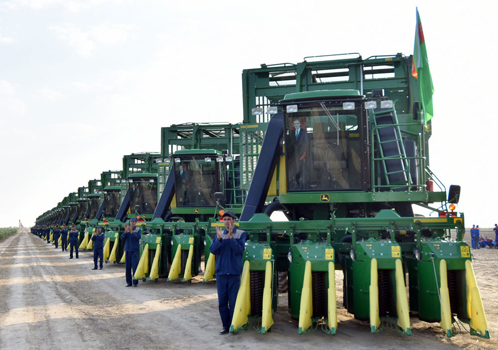 9-njy sentýabrda Türkmenistanda pagta ýygymyna girişildi. Hormatly Prezidentimiz Gurbanguly Berdimuhamedowyň ak pata bermegi bilen Ahal, Balkan, Lebap we Mary welaýatlarynda bu möhüm oba hojalyk möwsümi badalga aldy. Toprak-howa şertlerine laýyklykda, pagta ýygymy Daşoguz welaýatynda 16-njy sentýabrda başlanar. «Türkmenistan — Bitaraplygyň mekany» diýen şygar astynda geçýän ýylda ýurdumyzda “ak altynyň” bol hasyly ösdürilip ýetişdirildi. Häzir oba zähmetkeşleriniň baş wezipesi ýetişdirilen hasyly öz wagtynda we ýitgisiz ýygnap almakdan ybaratdyr. Döwlet Baştutanymyz Ministrler Kabinetiniň 27-nji awgustda geçirilen mejlisinde bu barada aýtmak bilen, pagtaçylara we ähli daýhanlara ata Watanymyzyň mundan beýläk-de gülläp ösmeginiň bähbidine alyp barýan yhlasly zähmetlerinde uly üstünlikleri arzuw etdi. Pagtaçylyk Türkmenistanyň daşary döwletlerden getirilýän harytlaryň ornuny tutýan önümçiligi we milli ykdysadyýetimiziň eksport kuwwatyny artdyrmak boýunça milli Liderimiz Gurbanguly Berdimuhamedowyň ýolbaşçylygynda işlenilip taýýarlanylan döwlet maksatnamalarynyň durmuşa geçirilmegine mynasyp goşandy üpjün edýän ähmiýetli pudakdyr. Ýurdumyzyň toprak-howa şertleri gowaçanyň orta we inçe süýümli görnüşlerini ösdürip ýetişdirmek üçin amatly ýagdaýy döredýär. Täzeçil tehnologiýa esaslanýan häzirki zaman önümçiliginiň guralyşynda pagta süýümi Diýarymyzyň dokma senagaty üçin örän gymmatly çig maldyr. Dokma senagatymyzyň önümlerine dünýä bazarlarynda uly isleg bildirilýär. Oba hojalygynda düýpli özgertmeleriň geçirilmegi netijesinde, bu ulgamyň kuwwaty barha artýar. Pudagyň häzirki zaman önümçilik hem-de hyzmat düzümini döretmek, ýer we suw serişdelerini rejeli peýdalanmak, ekerançylygyň medeniýetini ýokarlandyrmak şol özgertmeleriň möhüm ugurlarydyr. Ekerançylyk ýerlerinde meliorasiýa we suwaryş işleriniň geçirilişine, oba hojalyk toplumynyň tehniki binýadynyň täzelenilmegine köp mukdarda maýa goýum serişdeleri gönükdirilýär. Döwletimiz dünýäniň esasy önüm öndürijilerinden oba hojalyk tehnikalaryny yzygiderli satyn alýar. Hormatly Prezidentimiz Gurbanguly Berdimuhamedowyň Kararyna laýyklykda, Oba hojalyk we daşky gurşawy goramak ministrliginiň “John Deere Walldorf GmbH & Co. KG” kompaniýasy bilen baglaşan şertnamasynyň çäklerinde geçen ýyl “John Deere 9970” kysymly kombaýnlaryň 300-si gelip gowuşdy. Pagta ýygymynyň başyna çenli bolsa şeýle maşynlaryň ýene-de 300-si getirildi, olar Türkmenistanyň toprak-howa şertlerinde synagdan üstünlikli geçdiler. Döwlet Baştutanymyz 8-nji sentýabrda täze oba hojalyk tehnikalaryny gözden geçirip, degişli ýolbaşçylara pagta ýygymy möwsümini guramaçylykly geçirmek, ýetişdirilen hasyly ýitgisiz ýygnamak üçin olaryň netijeli peýdalanylmagyna gözegçiligi üpjün etmegi tabşyrdy. “John Deere 9970” kysymly kombaýn döwrebap tehnika bolup, ol ýokary amatlykly kabinasy, ulanyşda aňsatlygy, tygşytlylygy, ýokary öndürijiligi, şol sanda bunkeriniň uly göwrüminiň hasabyna öndürijiligi bilen tapawutlanýar. Ýeri gelende ýatlasak, 2017-2018-nji ýyllarda ýurdumyza şeýle kombaýnlaryň 400-si getirildi. Şular bilen bir hatarda, ylmy seçgiçilige, gowaçanyň tiz ýetişýän, ýokary hasylly hem-de täze etraplaşdyrylan görnüşleriniň döredilmegine uly ähmiýet berilýär. Oba hojalygyny sanly ulgama geçirmek, takyk ekerançylyk ulgamlaryny, öňdebaryjy tehnologiýalary ornaşdyrmak, daýhan birleşikleriniň düşewüntliligini artdyrmak, kärende gatnaşyklaryny kämilleşdirmek maksady bilen, anyk çäreler görülýär. Döwlet Baştutanymyz Gurbanguly Berdimuhamedowyň görkezmesine laýyklykda, sebitlerde pagta-dokma toplumlaryny kemala getirmek ugrundaky işler dowam edýär. Häzir Ahal welaýatynda täze senagat toplumlarynyň gurluşygy alnyp barylýar. Şol toplumlaryň her biri inçe süýümli pagtanyň 5 müň tonnasyny gaýtadan işlemäge niýetlenendir. Kaka we Babadaýhan etraplarynda gurulýan kärhanalar “kompakt-penýe” kysymly nah ýüplügi, matalary we taýýar tikin önümlerini öndürer. Hormatly Prezidentimiziň Kararyna laýyklykda, şu ýyl gowaça ekiljek ýerleriň umumy meýdany 620 müň gektara çenli giňeldildi. Bahar paslynda şunça ýere gowaçanyň “Ýolöten-7”, “Daşoguz-120”, “Daşoguz-144”, “Serdar”, “C-4727”, “Ýolöten-39”, “Jeýhun”, “C-2606”, “Ýolöten-14” orta we inçe süýümli görnüşleri ekildi. Bu ekini ösdürip ýetişdirmäge hususy oba hojalyk önümlerini öndürijiler hem gatnaşýarlar. Olar oba hojalyk maksatly ýörite ýer gaznasyndan ýer böleklerini aldylar. Umuman, ýurdumyz boýunça “ak altynyň” 1 million 250 müň tonnasyny taýýarlamak göz öňünde tutulýar. Şonuň 280 müň tonnasy Ahal welaýatynda, 10 müň tonnasy Balkan welaýatynda, 275 müň tonnasy Daşoguz welaýatynda, 320 müň tonnasy Lebap welaýatynda, 365 müň tonnasy bolsa Mary welaýatynda taýýarlanylar. Ýygym möwsüminde “John Deere 9970” pagta ýygyjy kombaýnlaryň 1 müňüsi we “MX-1.8” tirkegli pagta ýygyjy maşynlaryň 500-si, çig maly daşamak üçin ýük awtoulaglarynyň 2 müňüsi, traktorlaryň 2 müň 370-si we traktor tirkegleriniň 3 müň 714-si ulanylar. Döwlet Baştutanymyz Gurbanguly Berdimuhamedowyň tabşyrygyna laýyklykda, ýerlerde pagta ýygymynyň bökdençsiz alnyp barylmagy üçin ulanylýan tehnikalara gije-gündiziň dowamynda tehniki-hyzmat ediş işleri guraldy, mehanizatorlaryň, sürüjileriň we pagtany el bilen ýygmakda ussatlaryň öndürijilikli zähmet çekmegi we dynç almagy üçin zerur şertler döredildi. Pagtany maşyn bilen ýygmaga girişilmezden öň, gowaçanyň ýapragyny düşürmek üçin defoliant zerur bolan mukda