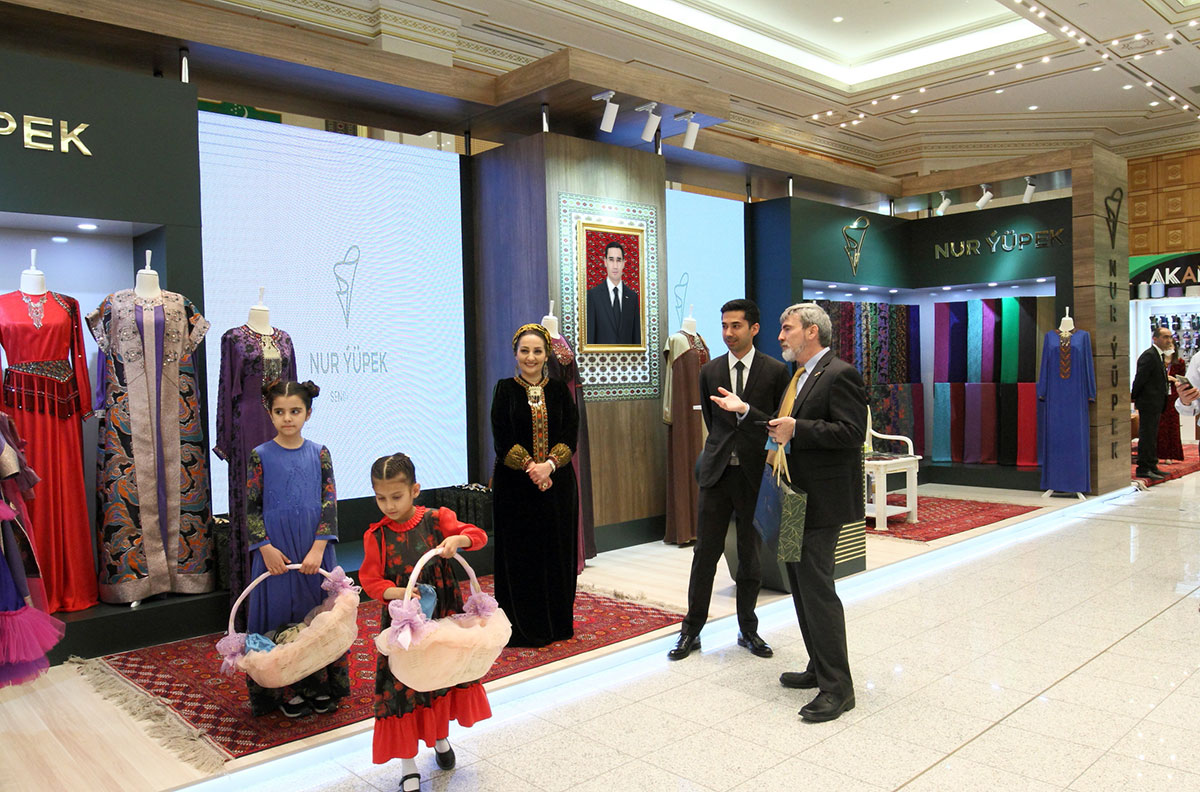 Senetçilik we amaly-haşam sungatynyň önümçiligi bilen meşgullanýan işewürleriň işleri halkymyzyň milli medeni mirasynyň wagyz edilmeginde möhüm orun eýeleýär. Sergide ajaýyp halylaryň özboluşly aýratynlyklary, zergärleriň işleri we keşdeçileriň önümleri bilen tanyşmak bolýar. Bu ýerde ýurdumyzyň taryhy ýadygärlikleriniň nusgalary şekillendirilen milli nusgadaky sowgatlyk önümler has özüne çekijiligi bilen tapawutlanýar.