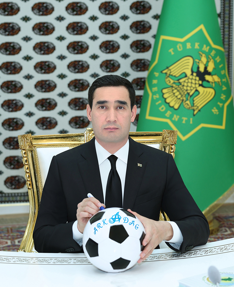 Hormatly Prezidentimiz Arkadag şäheriniň futbol toparynyň Türkmenistanyň Ýokary ligasynda üstünlikli çykyş edip, ýurdumyzyň çempiony, final oýnunda ýeňiş gazanyp, Türkmenistanyň Kubogyna mynasyp bolandygyny belledi we «Arkadag» futbol toparyna mundan beýläk-de ýeňişli ýollary arzuw etdi hem-de topar üçin ýörite niýetlenen topda ýadygärlik ýazgy galdyrdy.