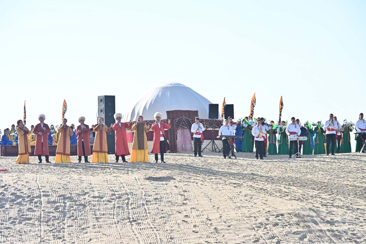Şeýle-de bu ýerde halk senetçiliginiň dürli görnüşleri, ussat senetçileriň el işleri, halkymyzyň medeniýetini beýan edýän gymmatlyklar, amaly-haşam we şekillendiriş sungatynyň eserleri görkezilýär. Göreş tutulyp, milli oýunlar oýnalýar. Bularyň ählisi aýdym-sazlaryň owazy, şatlykly gülki sesleri bilen utgaşýar. Halk we toý aýdymlary, läleler ýerine ýetirilýär.